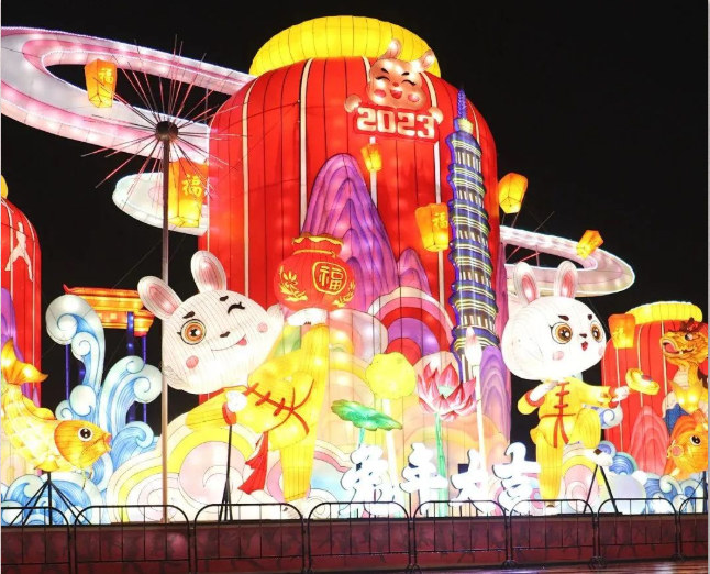 这个春节,不如来顺峰山公园吧!炫彩的灯光秀点亮整个青云湖,震撼的视觉效果带你感受不一样的凤城冬夜。而在顺峰山公园北三门前,一组以“功夫兔”为主要造型的大型花灯绝对是全城毋庸置疑的C位,花灯呈现出热闹非凡、灯火阑珊的新春景象,十分吸睛!