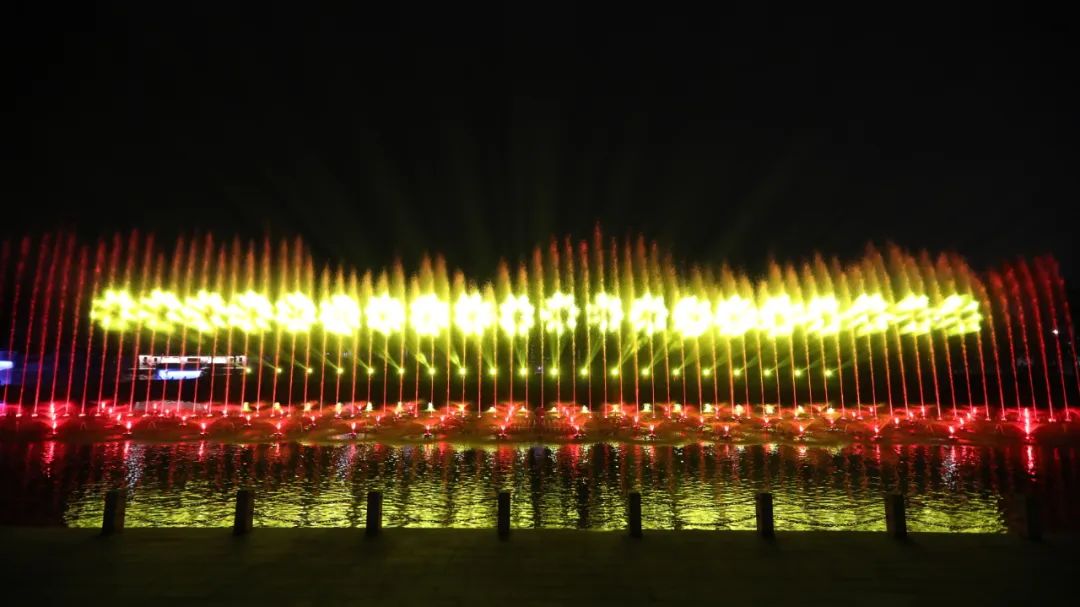 在紫南欢乐谷上演的水舞声光秀《乘风破浪的紫南》以讲述中国最美乡村紫南村的故事为核心,以炫酷的声光电为媒介,以惊艳视觉的表演形式,展示出新时代紫南村在大湾区乘风破浪的新形象。