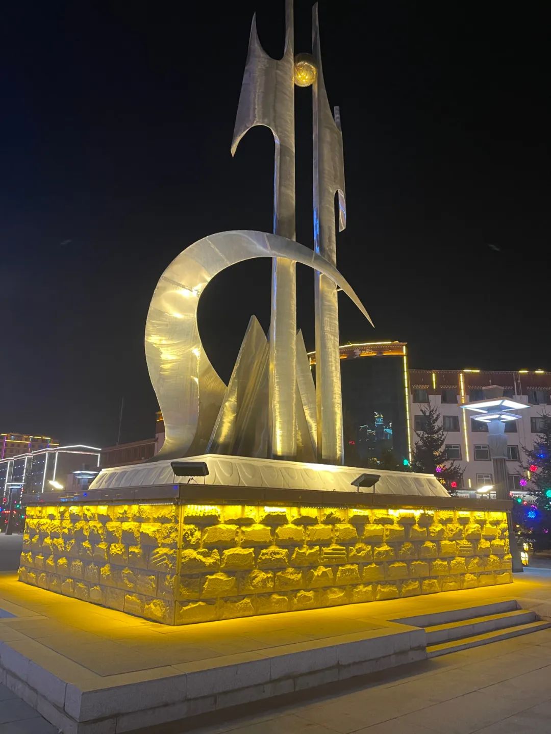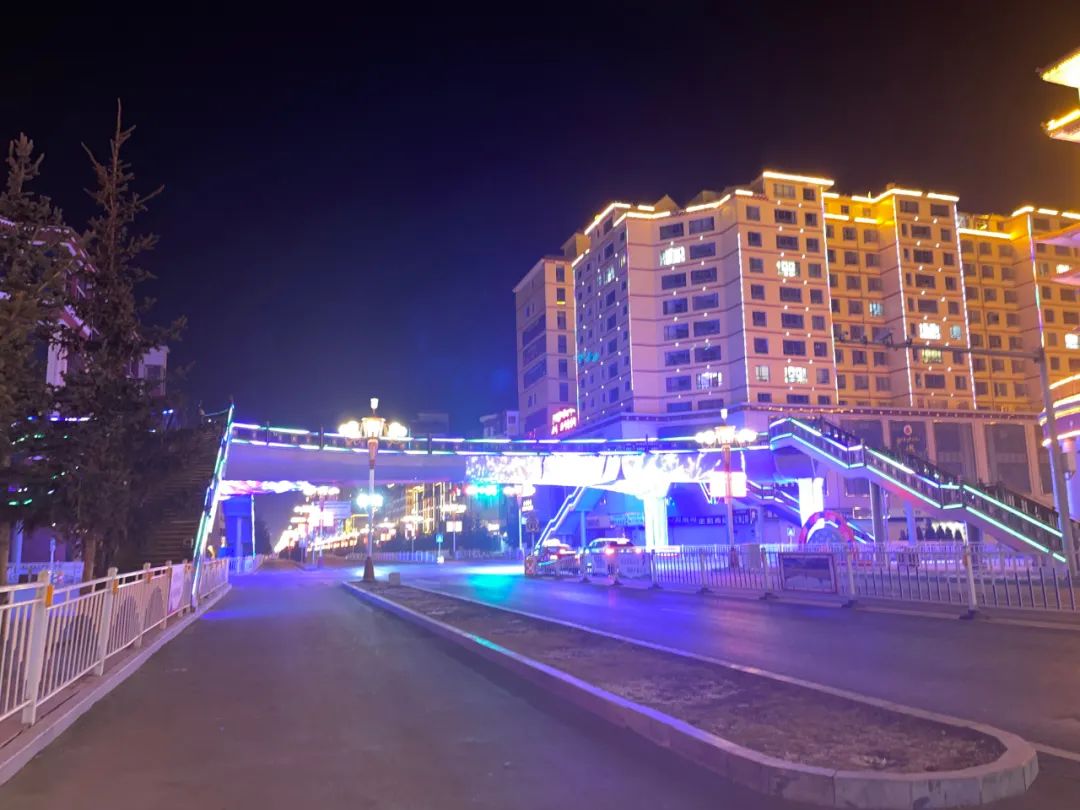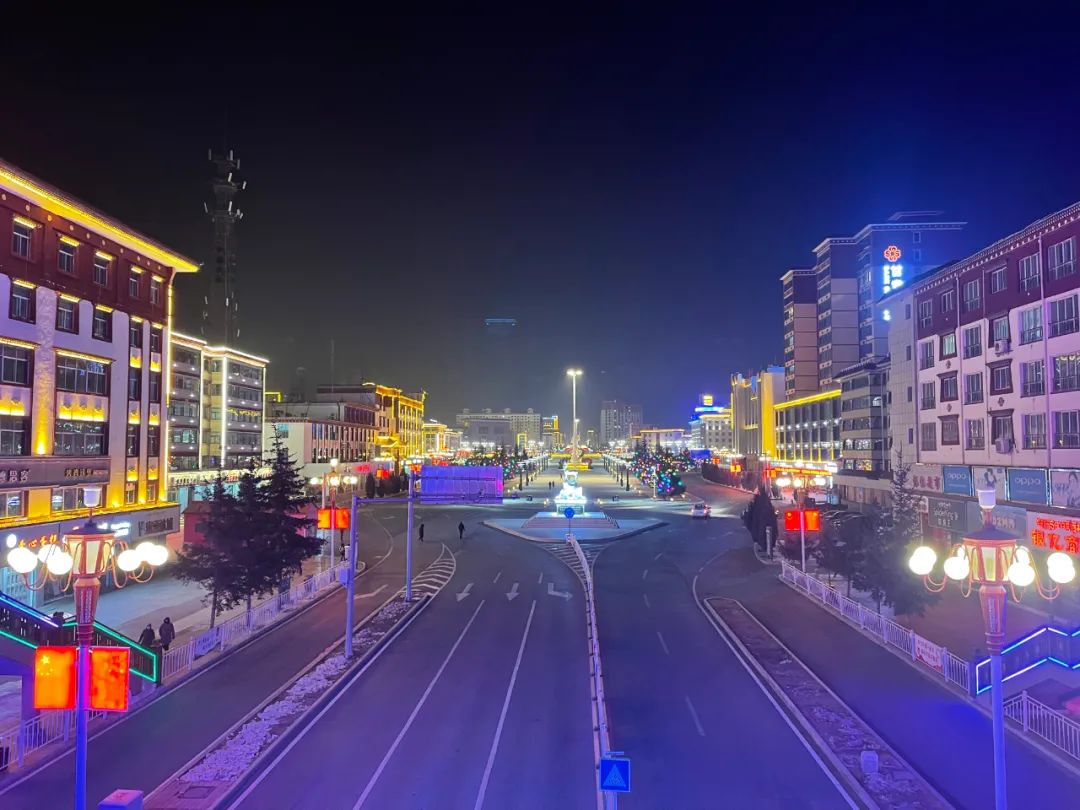 手机尾号8446的热心观众发来图片,新春佳节,夜幕下的合作香巴拉主题文化广场点亮景观灯饰,开启绚丽的新春灯光秀,五彩的灯光点亮了夜晚,为大美羚城增姿添彩,营造了浓厚的节日氛围。