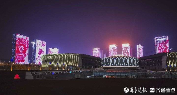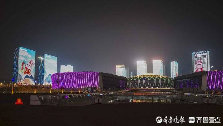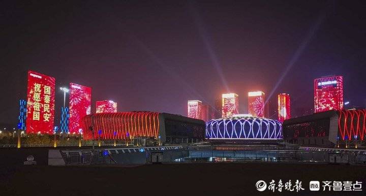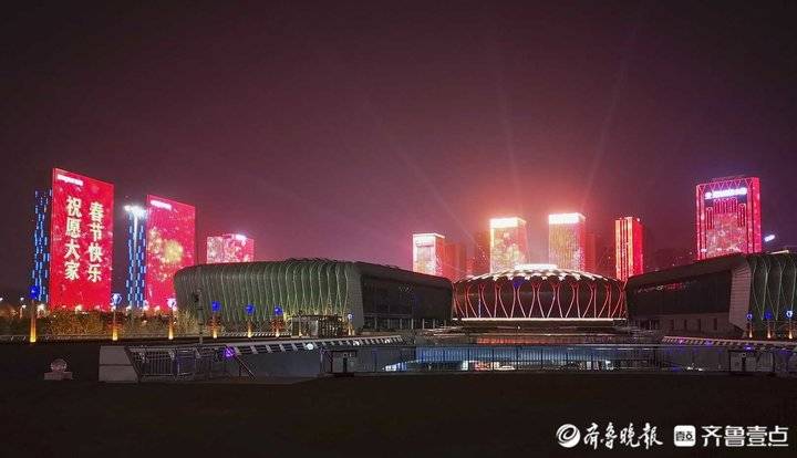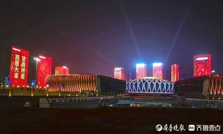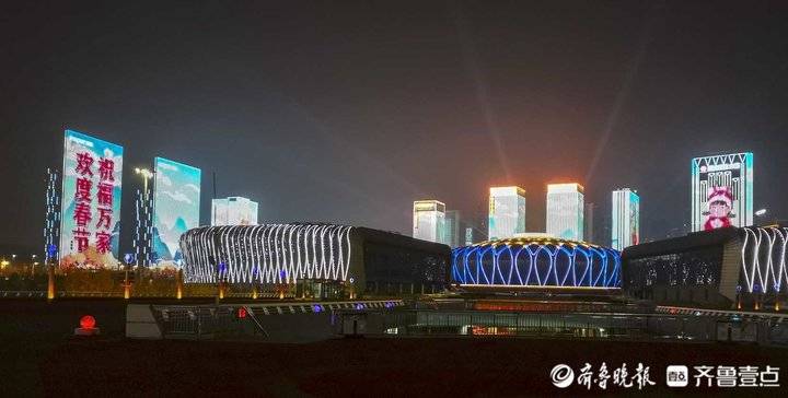 除夕夜济南东部新城灯光秀,流光溢彩年味十足