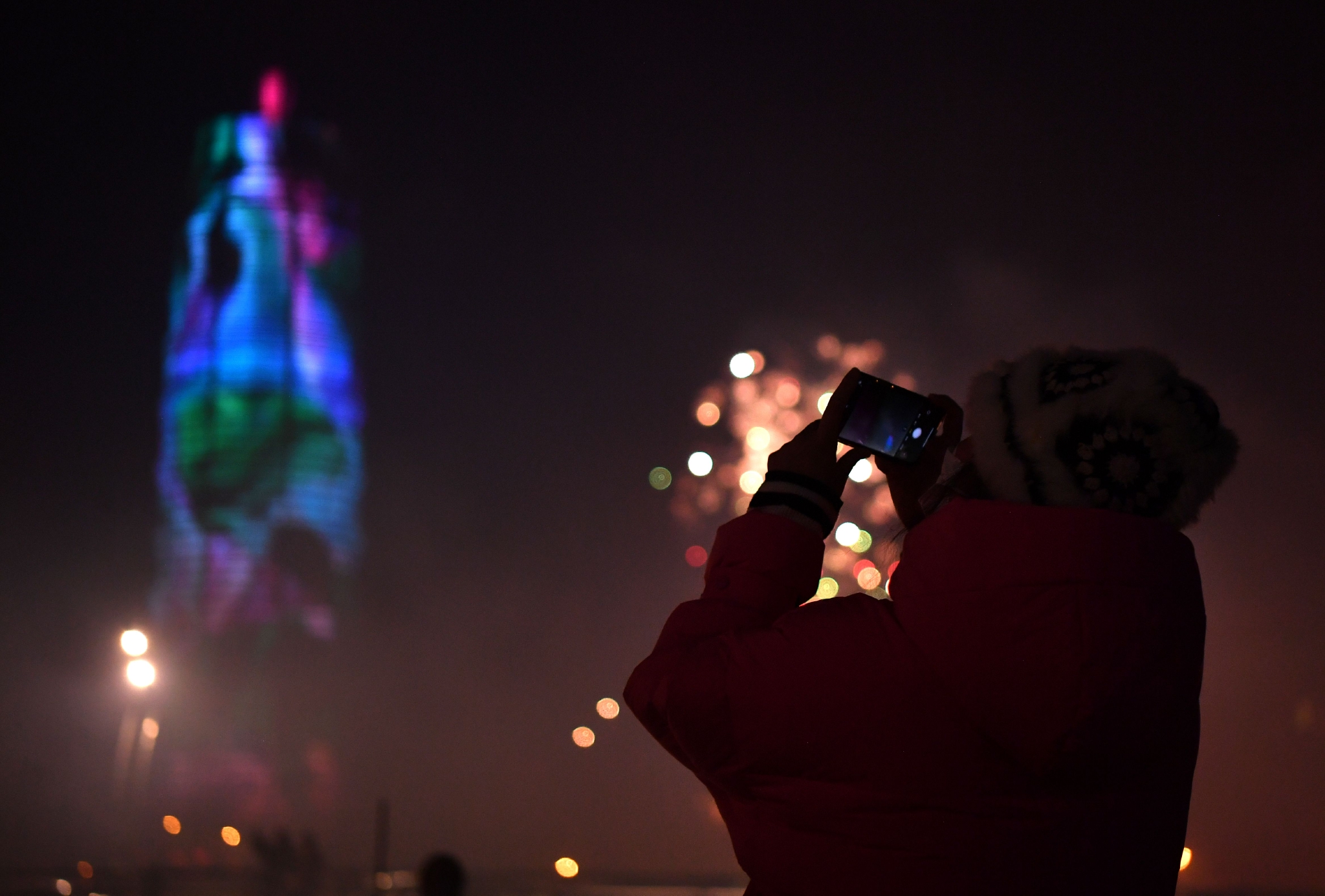 1月21日晚,郑州市郑东新区千玺广场上演灯光秀,欢庆新春佳节。郑东新区千玺广场将于1月22日至1月27日每晚18时至23时的每个整点交替播放科技版、新年版灯光秀,其他时间播放水墨画。