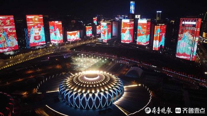 春节假日期间,在济南经十东路燕山立交至汉峪金谷数公里长的道路两侧,数十座高楼开起了绚烂的灯光秀,将道路装扮得流光溢彩,贺新春、迎新年、冬奥、民俗、泉城特色、山东元素等题材的画面在鳞次栉比的高楼外墙上不停变换,烘托出浓浓的节日气氛。