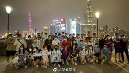 【女球迷包下外滩大屏上演梅西灯光秀】8月21日晚,外滩花旗银行的大屏幕亮起了庆祝梅西美洲杯夺冠和致敬梅西的灯光秀。一群身穿阿根廷或巴萨10号球衣的球迷聚集在一起,高呼梅西的名字。新闻晨报·周到记者在现场看到,这场灯光秀分两个时间段进行,分别是20:00-20:03、20:30-20:33。大屏幕上循环播放着庆祝梅西夺得美洲杯以及祝福他巴黎新征程的元素,和一旁大屏幕上的“我爱上海”相得益彰。据了解,这场外滩梅西灯光秀出自一名叫“瓜大王”的梅西女球迷,她个人自掏腰包,包下了外滩的这块大屏幕。记者联系到这位瓜大王,她讲述了自己和梅西的情缘,以及灯光秀背后的故事。女球迷自费包下外滩大屏幕上演梅西灯光秀,沪上梅西迷自发来了,既是狂欢也是告别