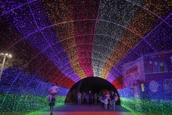 13日晚,鞍山市动物园内,时光隧道、炫彩的水母、充满科技感的全息投影……吸引许多游客拍照留念。据了解,鞍山市动物园首届梦幻灯光节于8月1日起到9月5日亮灯迎客。设计师们用灯光、音乐和灵感将整座园区装扮,为鞍山的夜晚增添了一道亮丽的风景线,同时也丰富了市民文化生活。