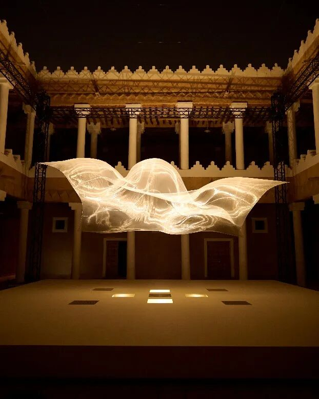 2025努尔·利雅得灯光节由Mami Kataoka(策展顾问负责人,东京森美术馆馆长)、Sara Almutlaq(沙特利雅得当地策展人)以及李振华(Li Zhenhua,策展人及Beijing Art Lab创始人)共同策划,汇集了来自 23个国家 59 位艺术家的 60 件作品,其中包括 35 件以上由沙特及国际顶尖艺术家量身打造的全新委托创作。本届灯光节以 “眸间一瞬”(In the Blink of an Eye)为策展主题,隐喻利雅得正经历的飞速变革。大规模艺术装置分布于城市中的六大场地,既有历史建筑相映成趣,亦与利雅得屡获殊荣的地铁系统及当代建筑所呈现的流畅现代线条交相辉映。