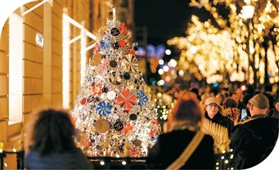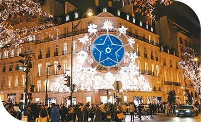 近日,法国巴黎街头张灯结彩,人头攒动,一派迎佳节的氛围。图为在巴黎街头拍摄的节日彩灯装饰。