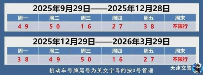 2025年12月29日(周一) 起,天津市机动车尾号限行将进入新一轮轮换期。